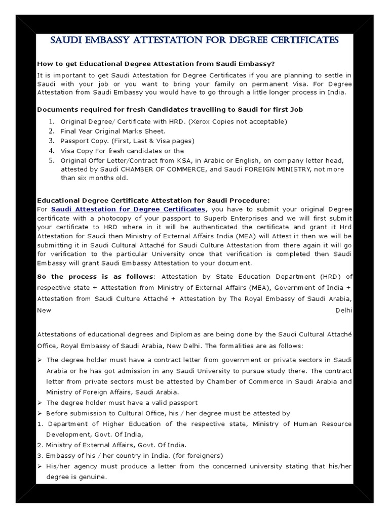 Saudi Embassy Attestation For Degree Certificates Travel