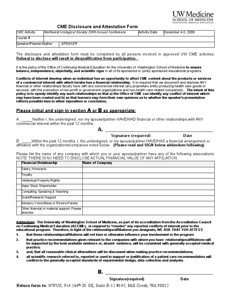 Disclosure And Attestation Form Speaker Conflict Of