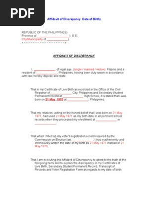 Affidavit Of Discrepancy Date Of Birth