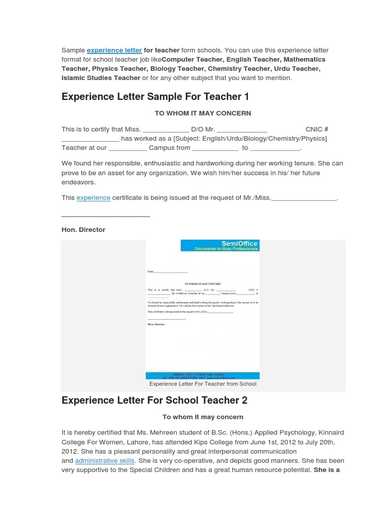 Experience Sample Letter Format Download Letter Format