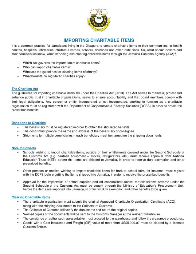 Jamaican Charities Exempt From Some Customs Duties Jamaica