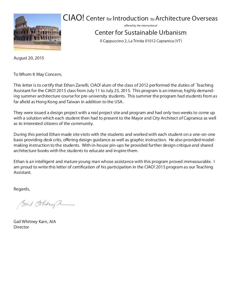 Letter Of Certification Ethan 2015