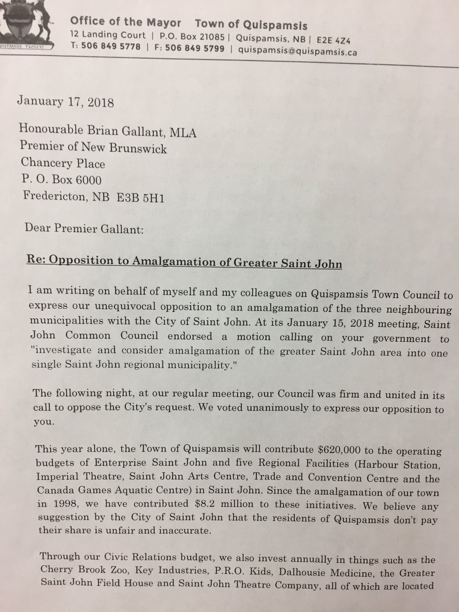 Town Of Quispamsis On Twitter The Attached Letter Has Been