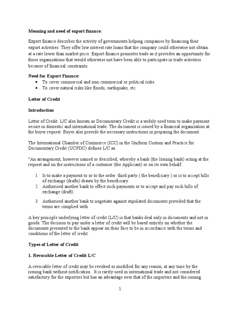 Exim Finance Letter Of Credit Credit Finance
