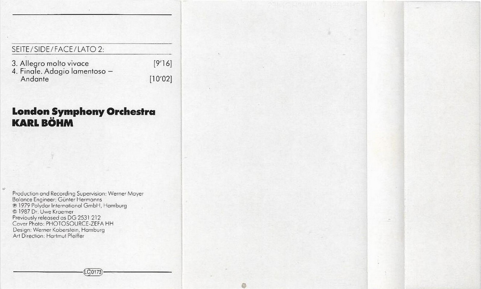 Tchaikovsky Karl Bohm Symphony No 6 Pathetique Cassette Album Dg Focus Lso