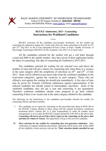 Counseling Instructions For Waitlisted Candidates Of Ug