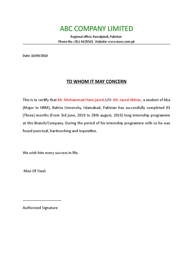Bonafide Letter Format For Mofa Attestation Sheen Services