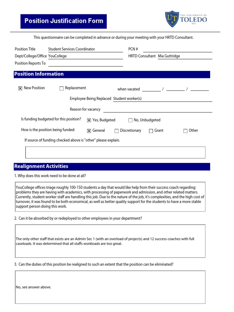 Position Justification Form Employment Business