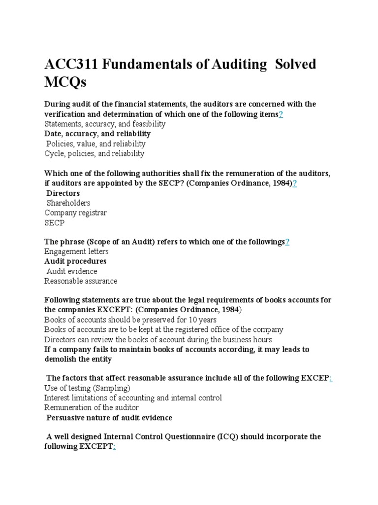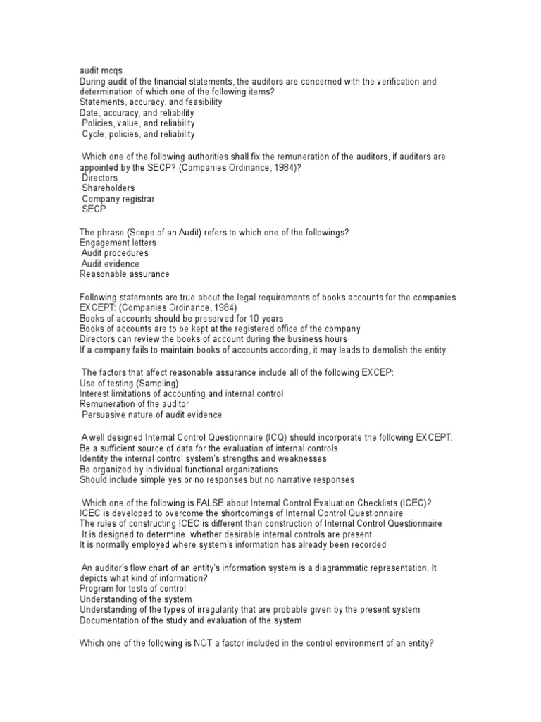 Audit Mcqs Audit Financial Statement