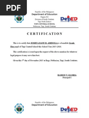 Certification Of Enrolment Sample