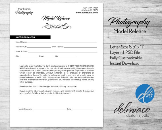 Photography Model Release Form Fully Customizable Layered Psd Photoshop Template