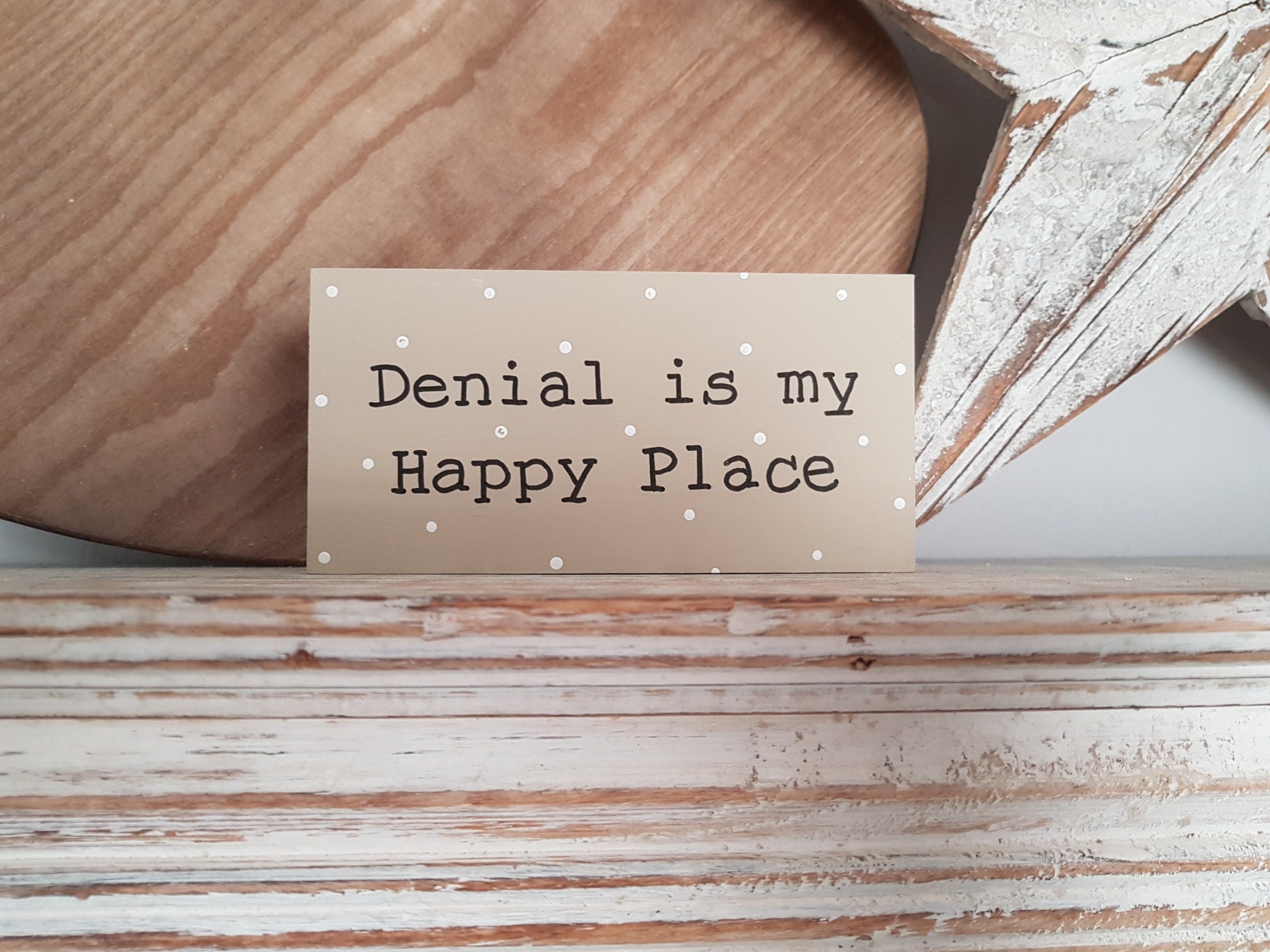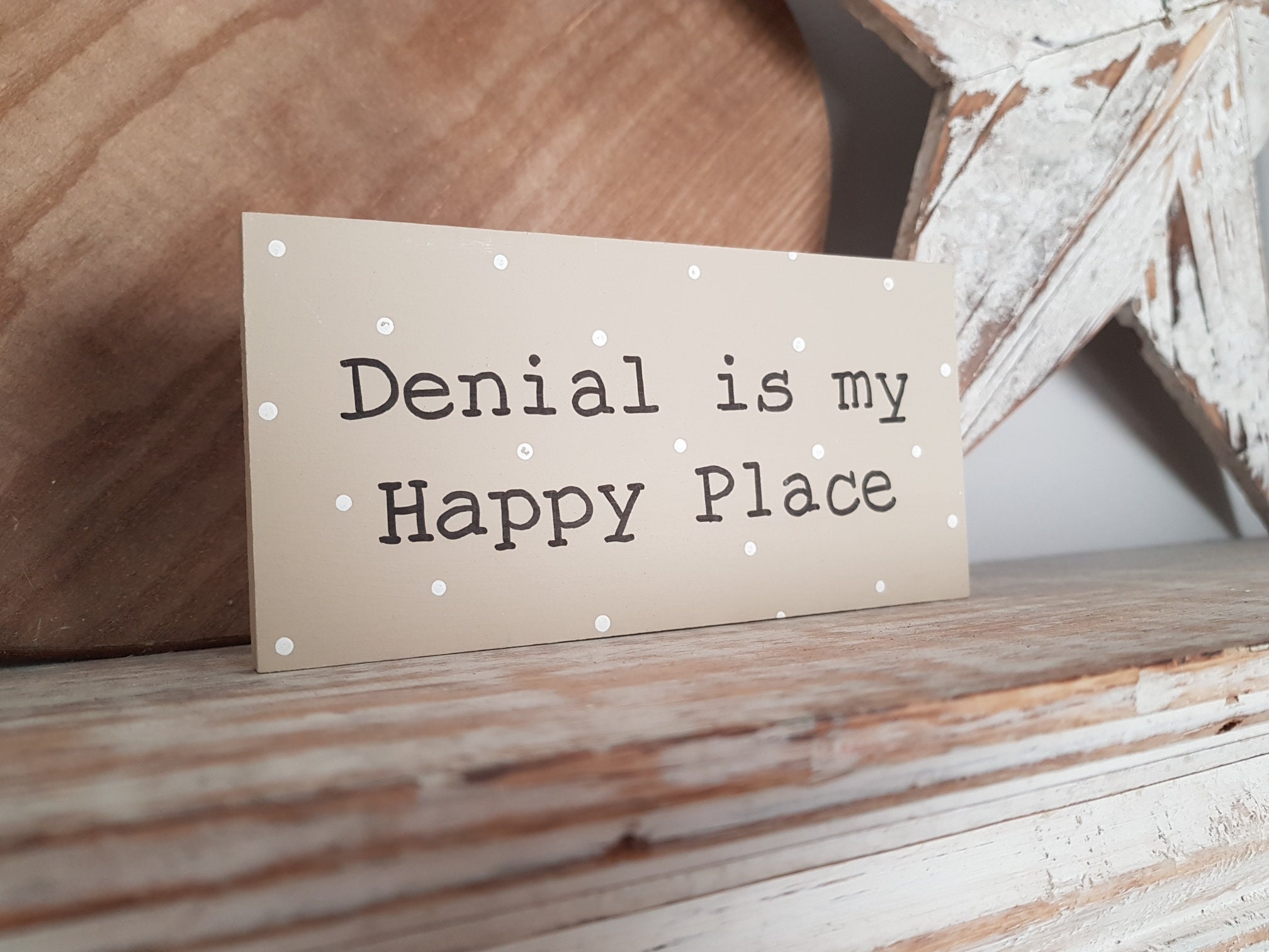 Wooden Sign Denial Is My Happy Place 15cm X 7 5cm