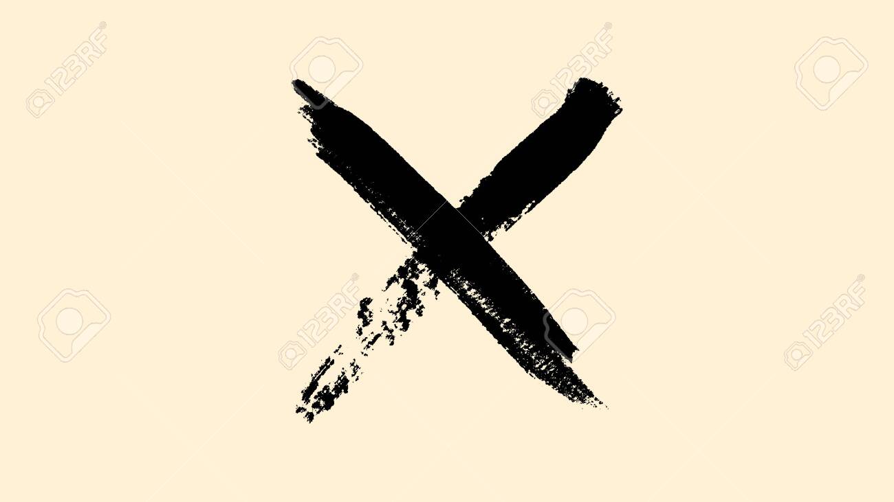 Abstract Black Cross Painted By Wide Brush Strokes On Beige Background