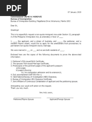 Bi Joint Letter For 13a Visa Sample