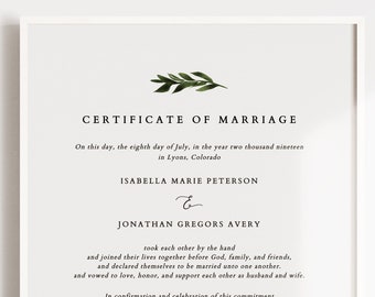 Marriage Certificate Wedding Keepsake 7 Year Anniversary