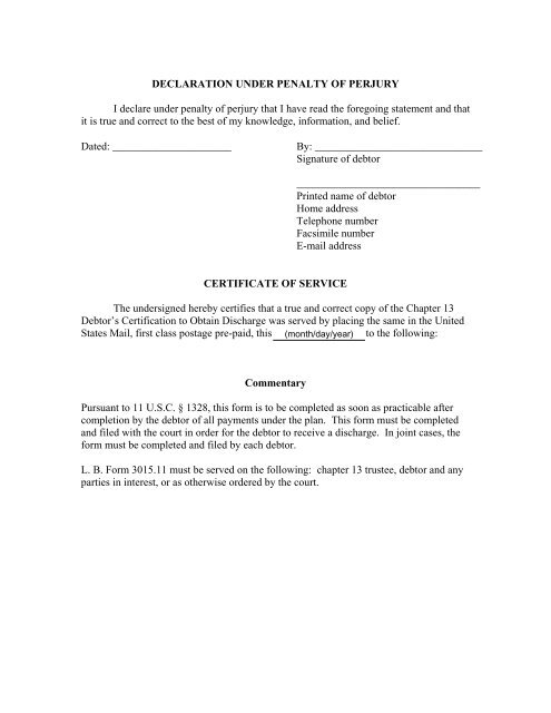Free Printable Declaration Under The Penalty Of Perjury