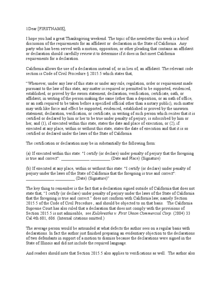 Sample Declaration For California