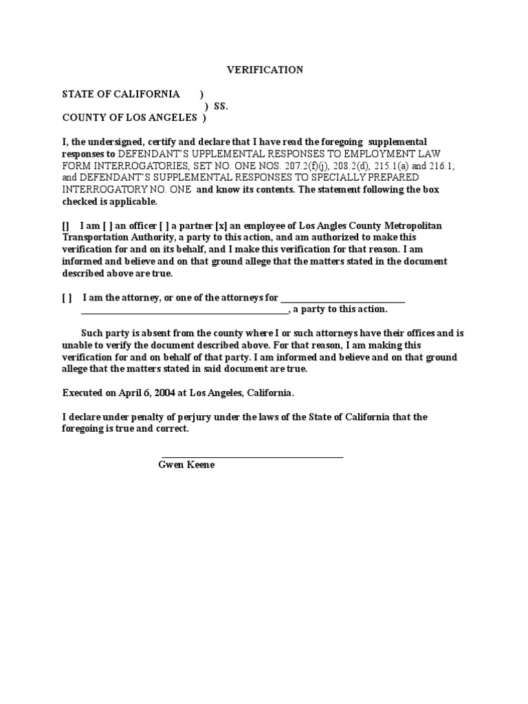 Sample Verification For California Probate