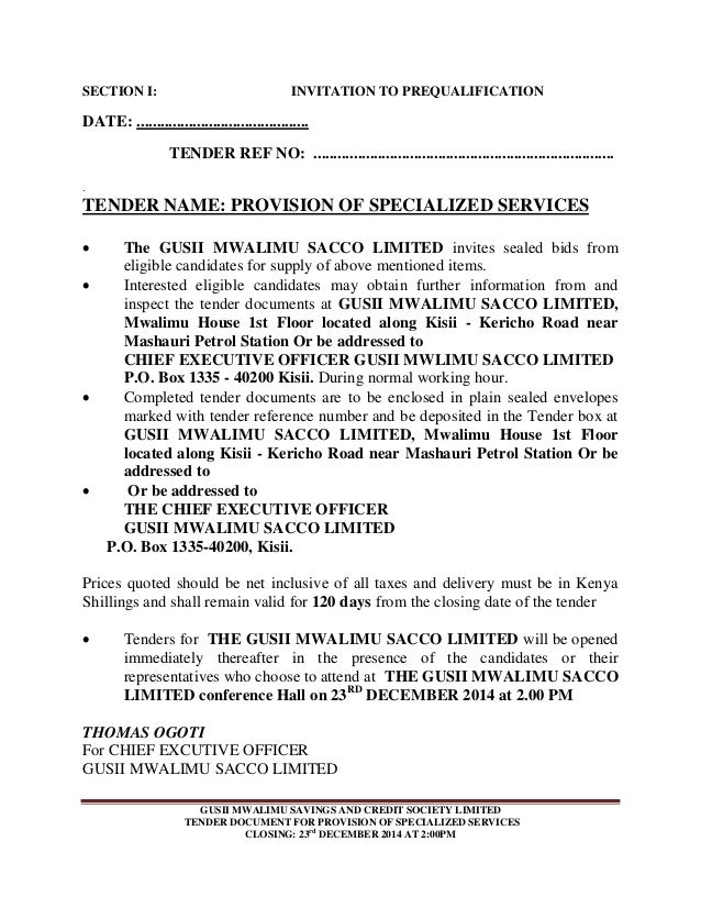 Gusii Mwalimu Sacco Tender Documents 2015 2016