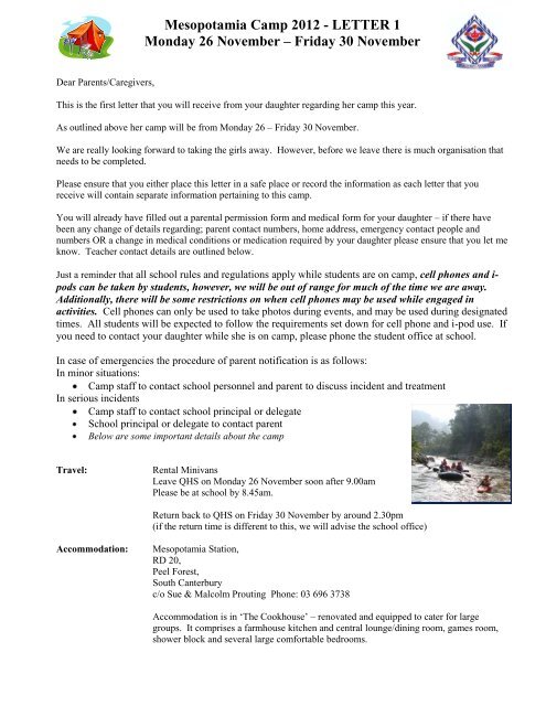 Mesopotamia Camp Letter 2 Queen S High School