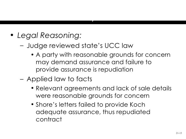 Quartz workcorp 880 f. 2 between merchantsthe reasonableness of grounds for insecurity and the adequacy of any assurance offered shall be determined according to commercial standards. 3acceptance of any improper delivery or payment does not prejudice the aggrieved partys right to demand adequate assurance of future performance.