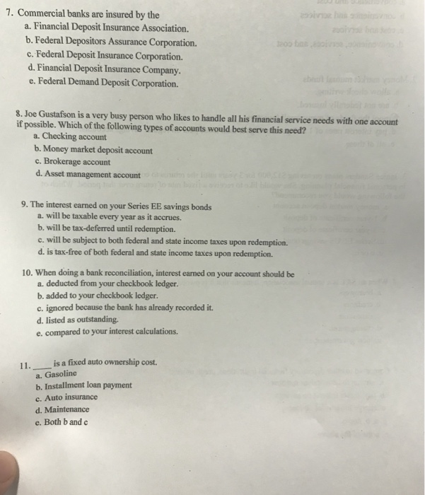 Solved 7 Commercial Banks Are Insured By The A Financia