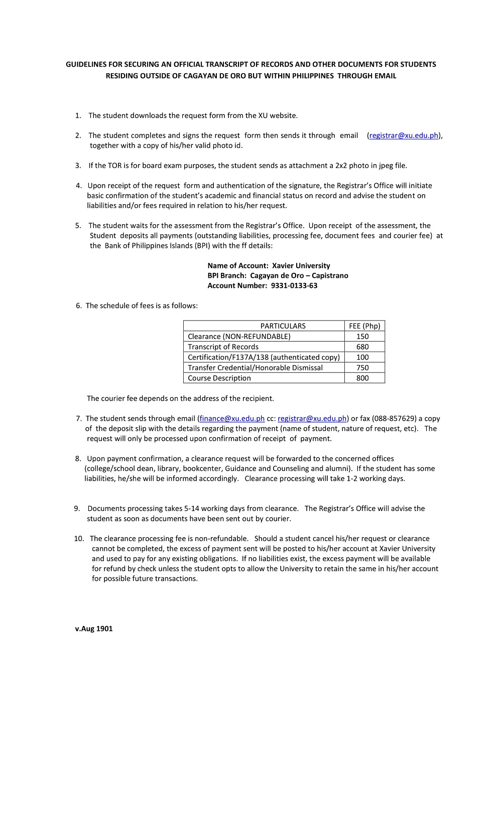 If you urgently need it for visa application car house loan credit card insurance or as a requirement for going abroad. Request for checkbook 5. Application for telegraphic transfer 4.