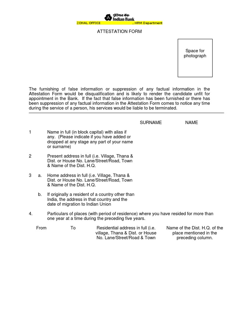 Attestation Form For Ibps Address Geography Criminal Law