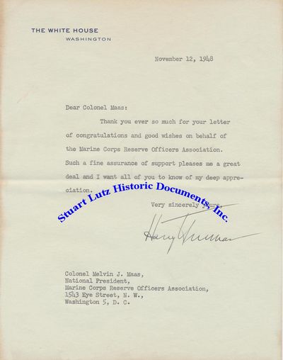 Abaa Recently Re Elected Harry Truman Thanks The Marine