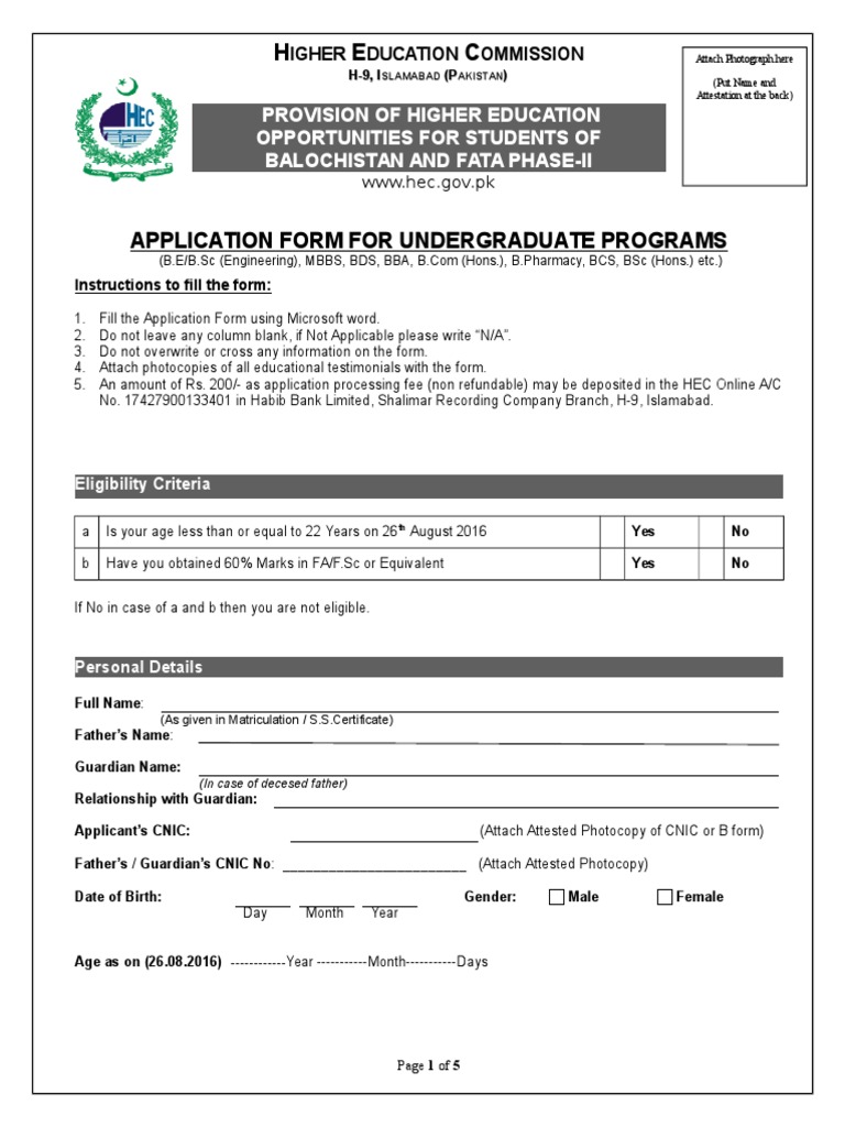 Application Form For Undergraduate Program Balochistan And