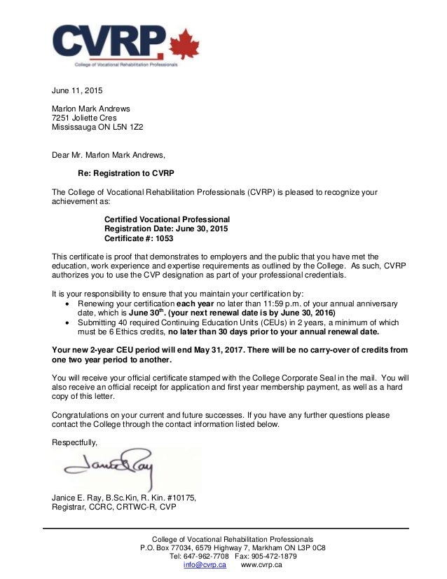 Cvrp Acceptance Letter Cvpm Andrews