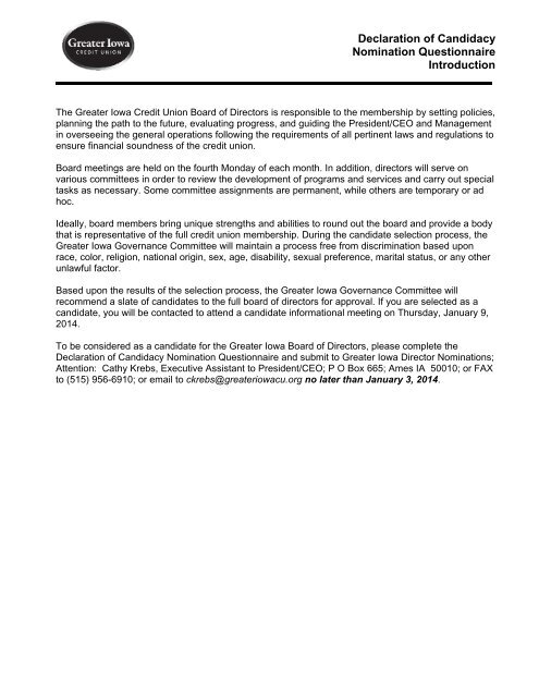Declaration Of Candidacy Nomination Questionnaire