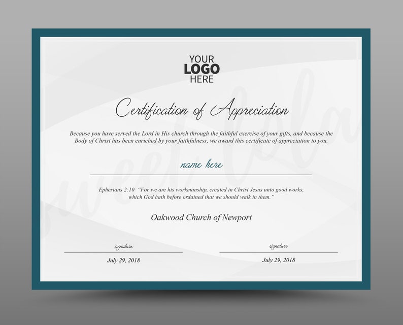 Certificate Template Instant Download Certificate Of Appreciation Editable Ms Word Doc And Photoshop File Included