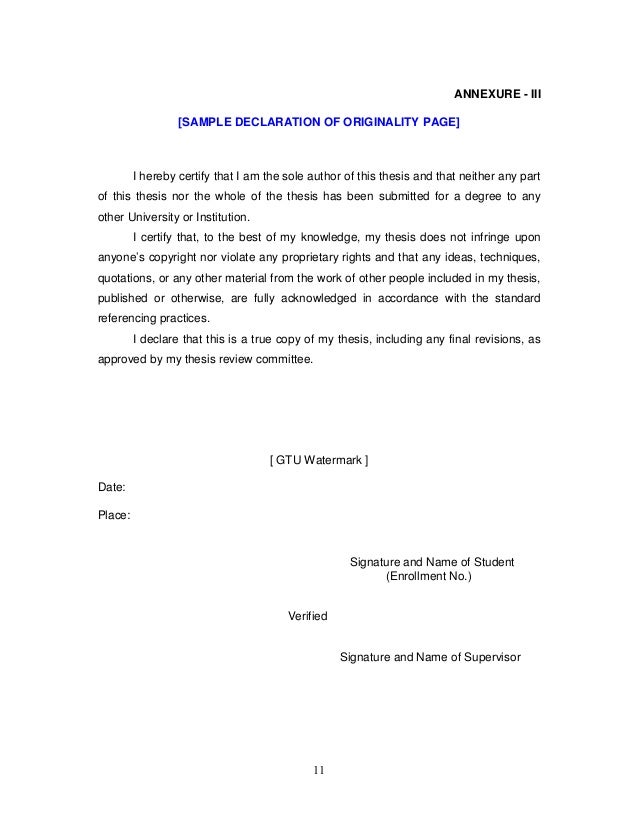 Sample Declaration Statement Dissertation Sample