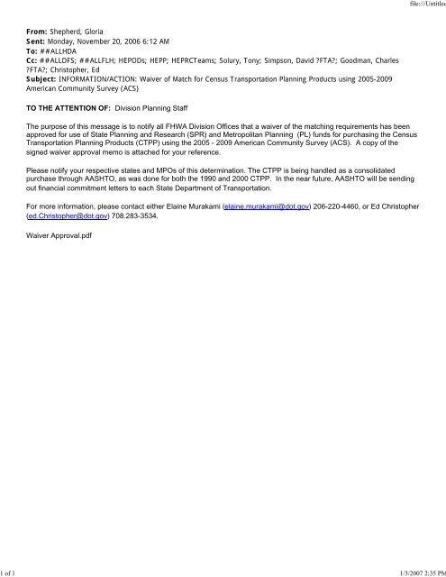 Sp R Waiver Letter Census Data For Transportation Planning