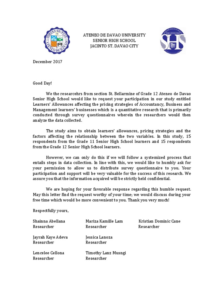 Letter For Conducting Survey Docx Lyceum Of The
