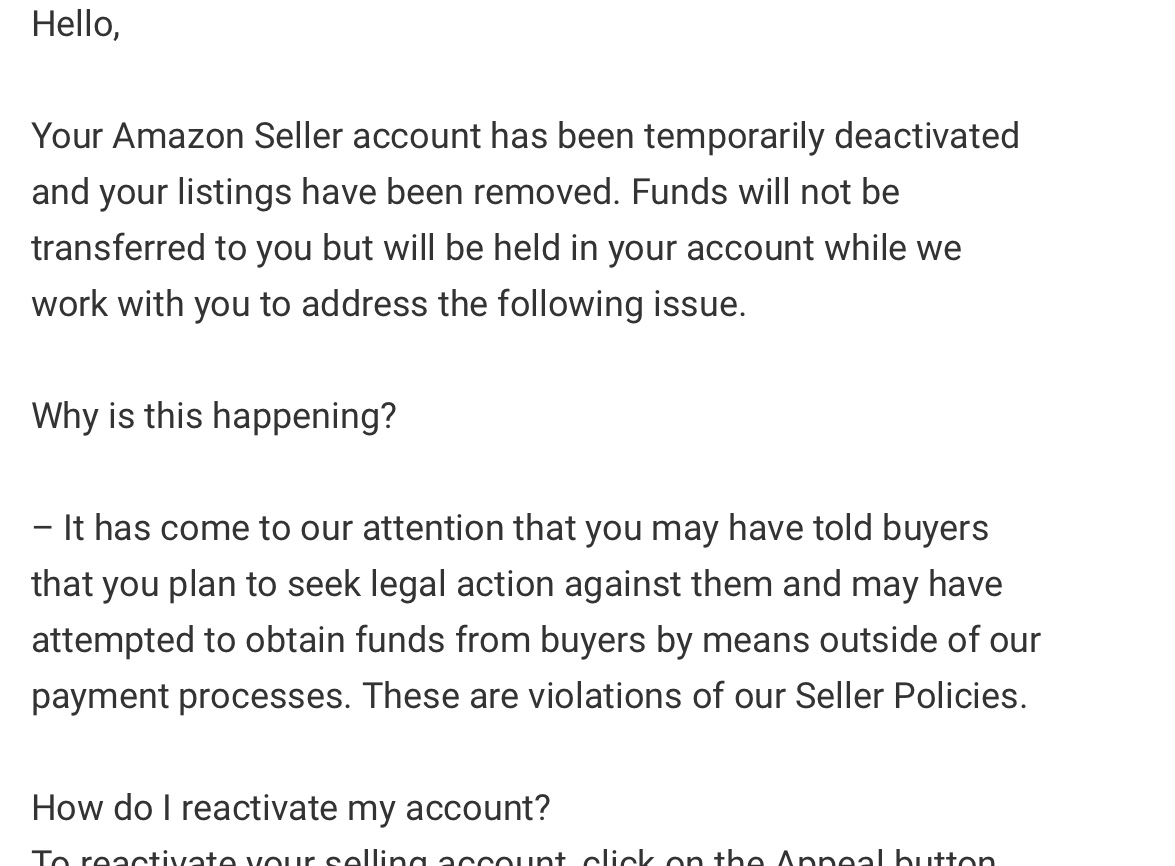 Your Amazon Seller Account Has Been Temporarily Deactivated