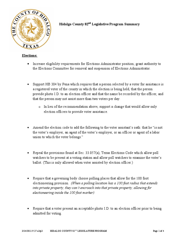 Hidalgo County Legislative Program Summary 82nd Legislative