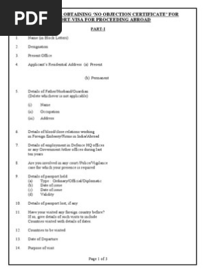 No Objection Letter Format Passport Government And