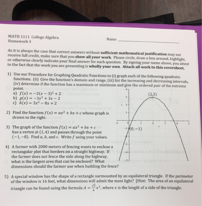 Solved Math 1111 College Algebra Homework 4 Name As It Is