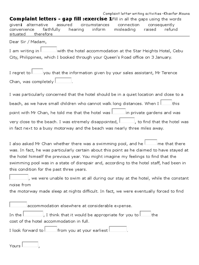 Writing A Letter Of Complaint About A Bad Holiday Esl