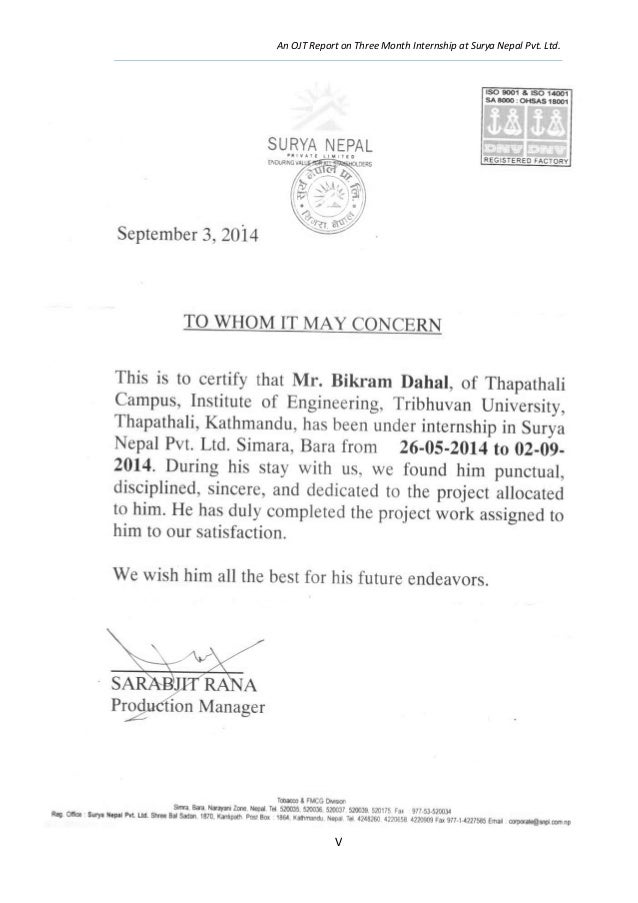 An Ojt Report On 3 Month Internship At Surya Nepal