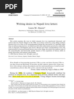 Pdf Writing Desire In Nepali Love Letters Laura Ahearn