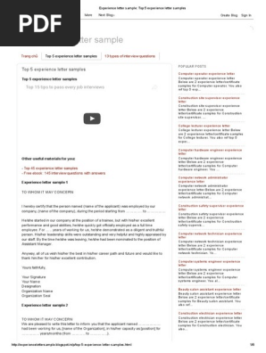 Experience Letter Sample Top 5 Experience Letter Samples