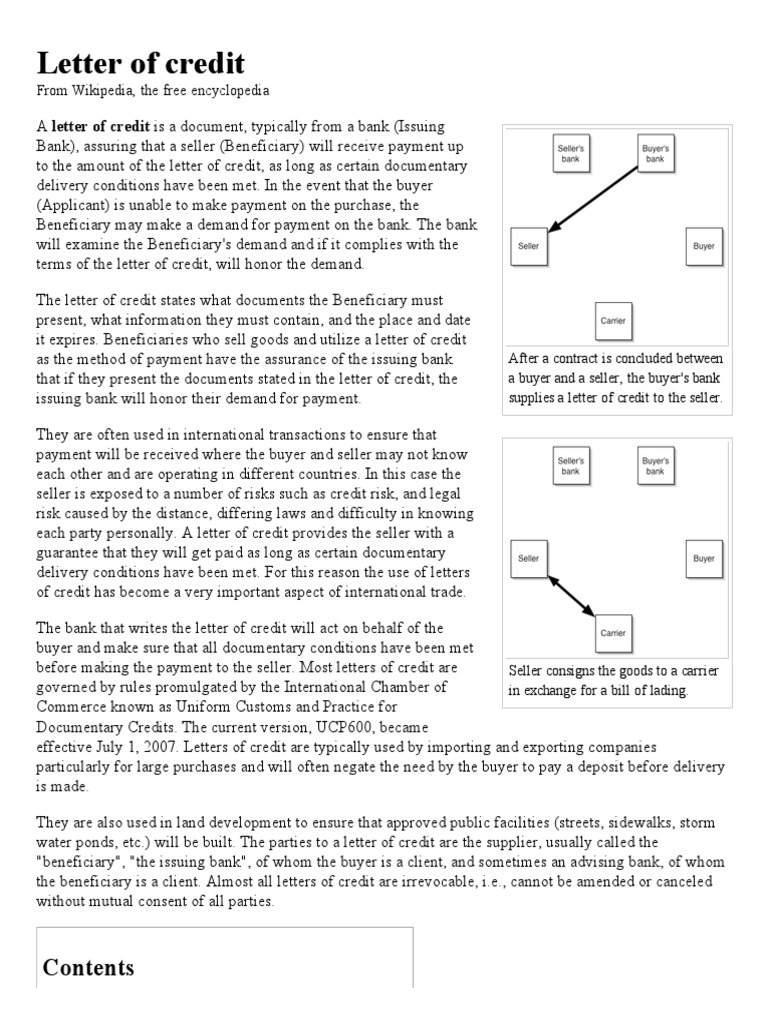 Letter Of Credit Wikipedia The Free Encyclopedia Carta