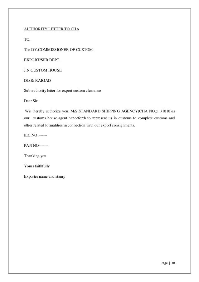 Sample Format Of Customs Clearance Authorisation Letter