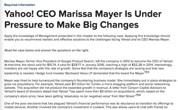 Solved Required Information Yahoo Ceo Marissa Mayer Is U