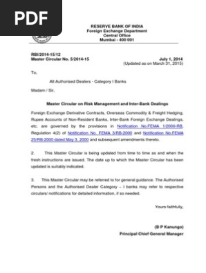Master Circular On Rbi Circular Circular On Forex Risk
