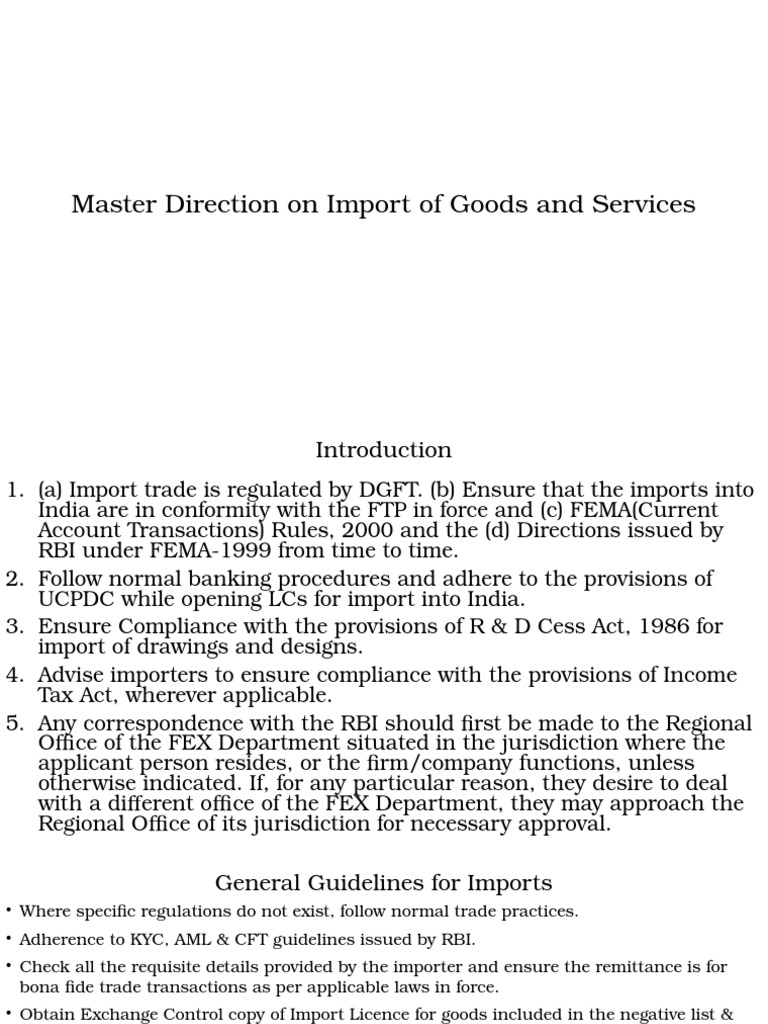 Master Direction Import Of Goods And Services