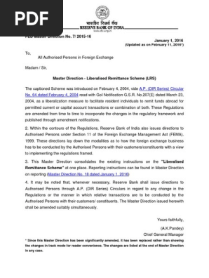 Master Direction On Liberilised Remittance Scheme Jan 1